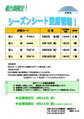 5月分空席申し込み受付